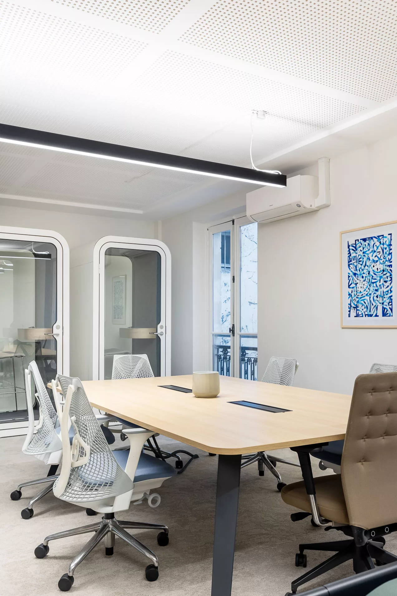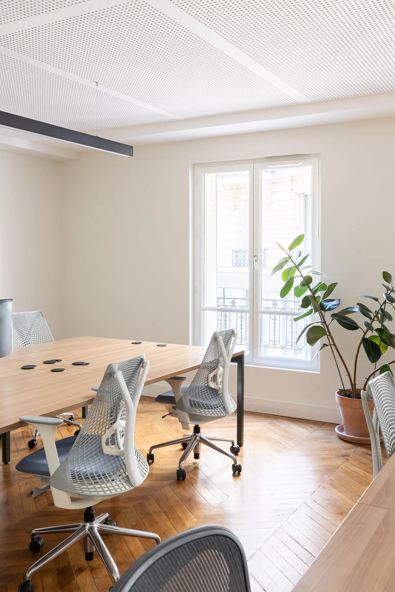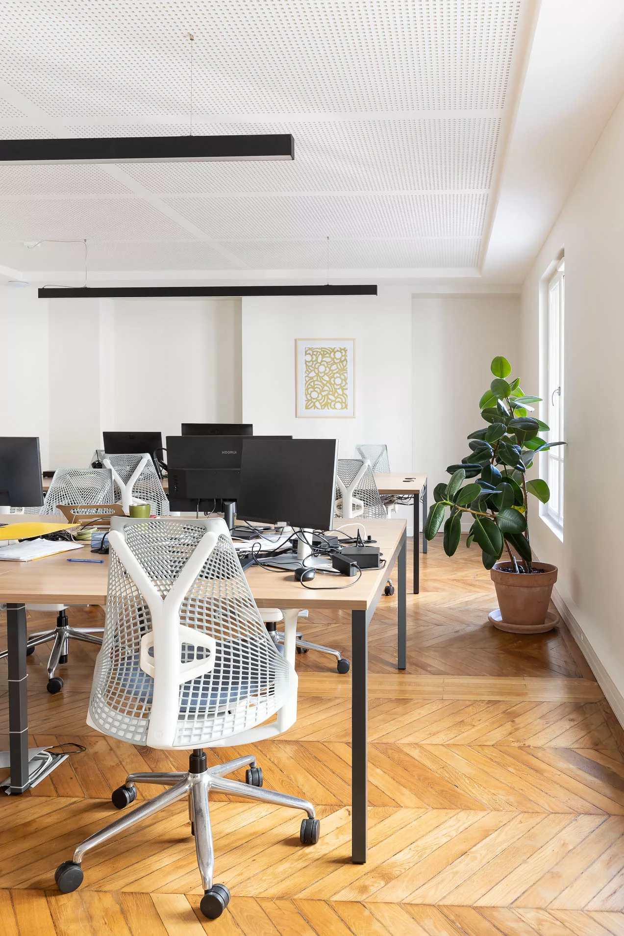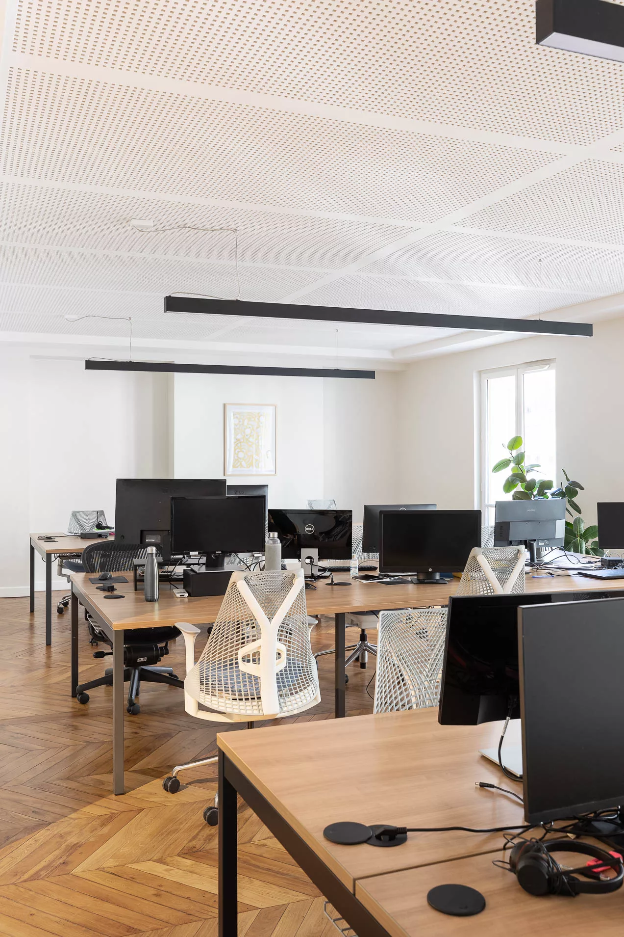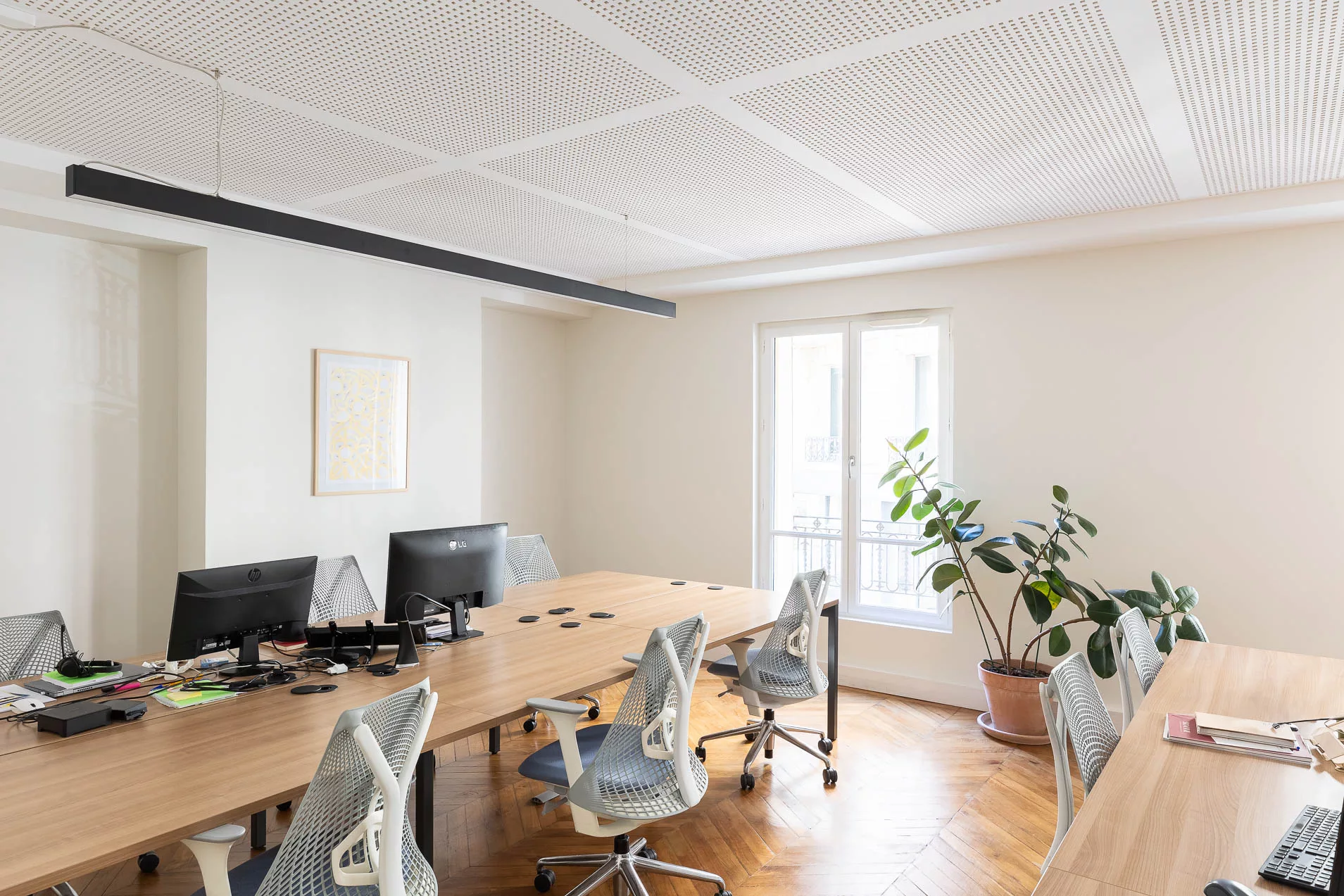 D’une superficie totale de 175 m², cet espace a été entièrement rénové, réaménagé et repensé afin de répondre aux nouveaux usages du travail. Chaque détail a été conçu pour conjuguer fonctionnalité, esthétique et fluidité, dans un environnement aussi agréable qu’efficace.